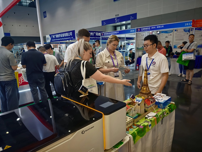 亞洲教育裝備大會的第一天,中澤教育(深圳)有限公司以其創新的教育裝備和技術解決方案,成功地吸引了大量參觀者和合作伙伴的關注。中澤科教不僅向參觀者展示了其激光切割機等教育裝備的實用性和創新性,還通過專業咨詢服務和現場演示,讓參觀者深刻體驗到了科技如何賦能教育,提升教學的質量和效率。