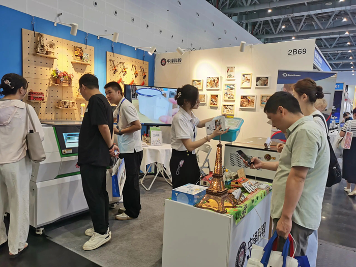 中澤科教的激光切割機在展會上進行了現場演示,其精準的切割能力和高效的工作性能贏得了參觀者的陣陣掌聲。通過實際操作,參觀者可以清晰地看到激光切割機在教育領域的應用潛力,如制作教學模型、藝術作品等。