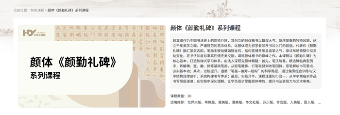 平臺(tái)如一座書法藝術(shù)寶庫,既有篆、隸、楷、行、草等傳統(tǒng)書體的教學(xué)滋養(yǎng),亦含硬筆與粉筆書寫的細(xì)致指導(dǎo);更輔以教學(xué)視頻、碑帖字帖、集字臨帖、云備課等模塊,為書法教學(xué)鋪就一條融合科技與傳統(tǒng)的創(chuàng)新之路,讓筆墨傳承煥發(fā)新的生機(jī)。