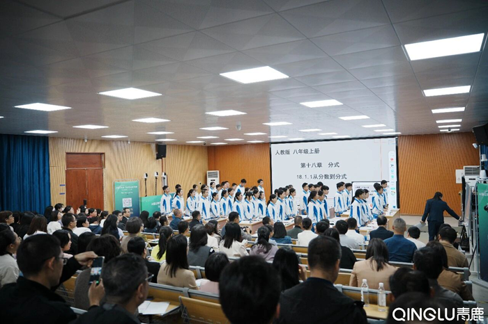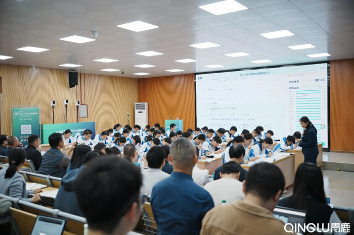 在課例展示環節,新興縣第一中學李麗媚老師以初中數學《從分數到分式》一課展示了融合AI循證與青鹿智慧紙筆技術的精彩課堂。