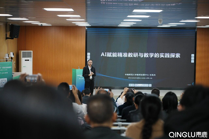 在專家報告環節中,華南師范大學杜炫杰副教授結合課例就AI如何賦能高效課堂和精準教研進行分析和解讀。