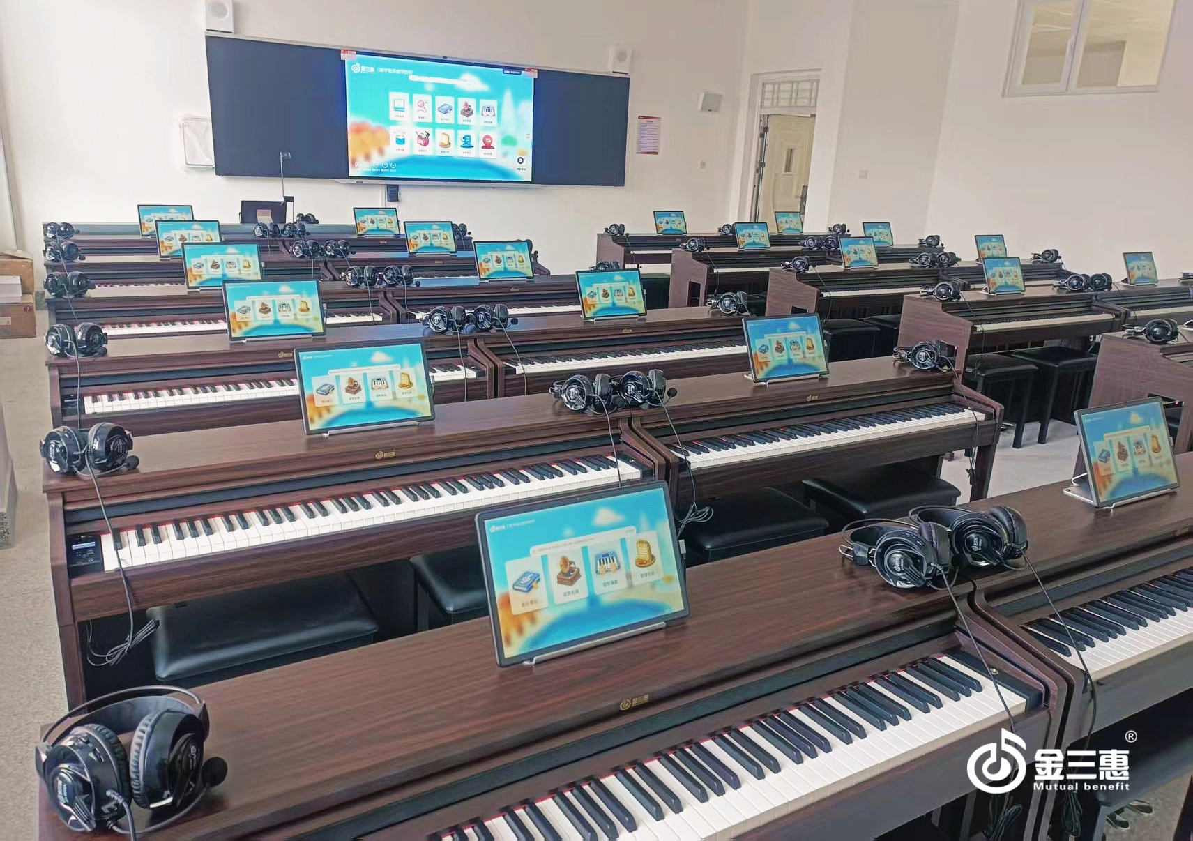 金三惠常規數字音樂教室符合國家教育部音樂教室配置標準,是一個多功能化,數字化、智能化的綜合性音樂教室。教室滿足中小學音樂與唱游課程教學要求,配備多種樂器、教具、課程資源等,能夠滿足學生聆聽、欣賞、演奏、創作、排練的需求,培養學生的創造力、自信心、專注性、合作精神、反應能力及全面人格發展,享受音樂帶來的快樂。