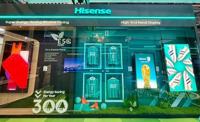 海信數字標牌產品DM66GE系列憑借節能低功耗設計,通過ENERGYSTAR®8.0認證,成為零售、連鎖商超、企業實現可持續發展目標的理想之選。此次展會全球首發85"場序RGBminiLED高亮櫥窗屏,應用海信跨代領先的RGBMiniLED疊加場序技術,在實現4000尼特超高亮度的前提下,實際工作平均功耗低于300W,能效等級可達歐洲ERPA級,比同尺寸櫥窗產品節能50%以上——每年每臺設備節約的電能降低的碳排放相當于植樹300棵。