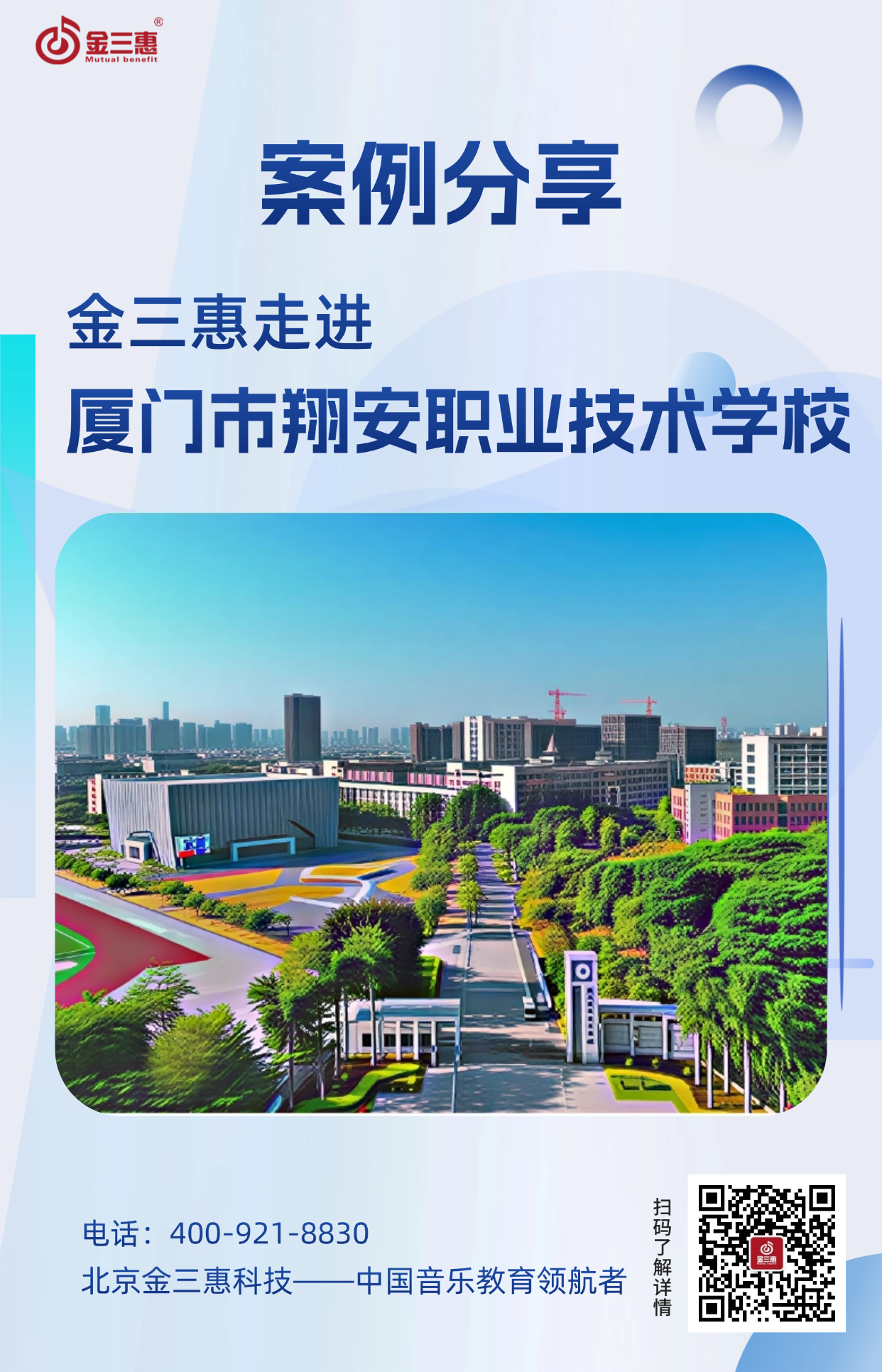 2026年3月,金三惠音樂教室走進廈門市翔安職業技術學校,為學校提供了50+1的電鋼琴教室,配備了金三惠電鋼琴教學系統、電鋼琴、數字音樂教學儀等教學教具。