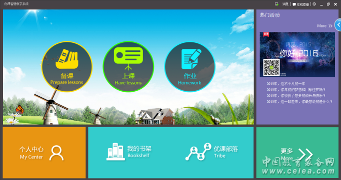 產品詳細介紹系統構成 優教智慧課堂解決方案,由智慧課堂教師教學平臺、智慧課堂學生端軟件、教師平板、學生平板、移動式充電柜、無線AP共同構成。 優教智慧課堂系統,是運行在智慧課堂云終端上的一套軟件系統,用以支持各種電子書包進行課堂互動教學,實現課堂的互動與設備控制,可以與智慧校園云平臺掛接,實現數據中心存儲和網絡備課、輔導。 優教智慧課堂系統操作簡單,實現全模式互動教學。學生的電子書包通過智慧課堂云終端,直接參與課堂互動,同時可以和智慧校園云平臺掛接。 本解決方案主要是結合教學軟硬件環境,研究解決適應環境的數字化教育模式,為師生提供一系列與之相符的、套貫穿課前、課中與課后教學活動的客戶端軟件,配套相應的數字化教材、教輔等資源,以滿足教學活動實際需要,實現教師端和學生端互聯、互通、互動及資源共建。 |