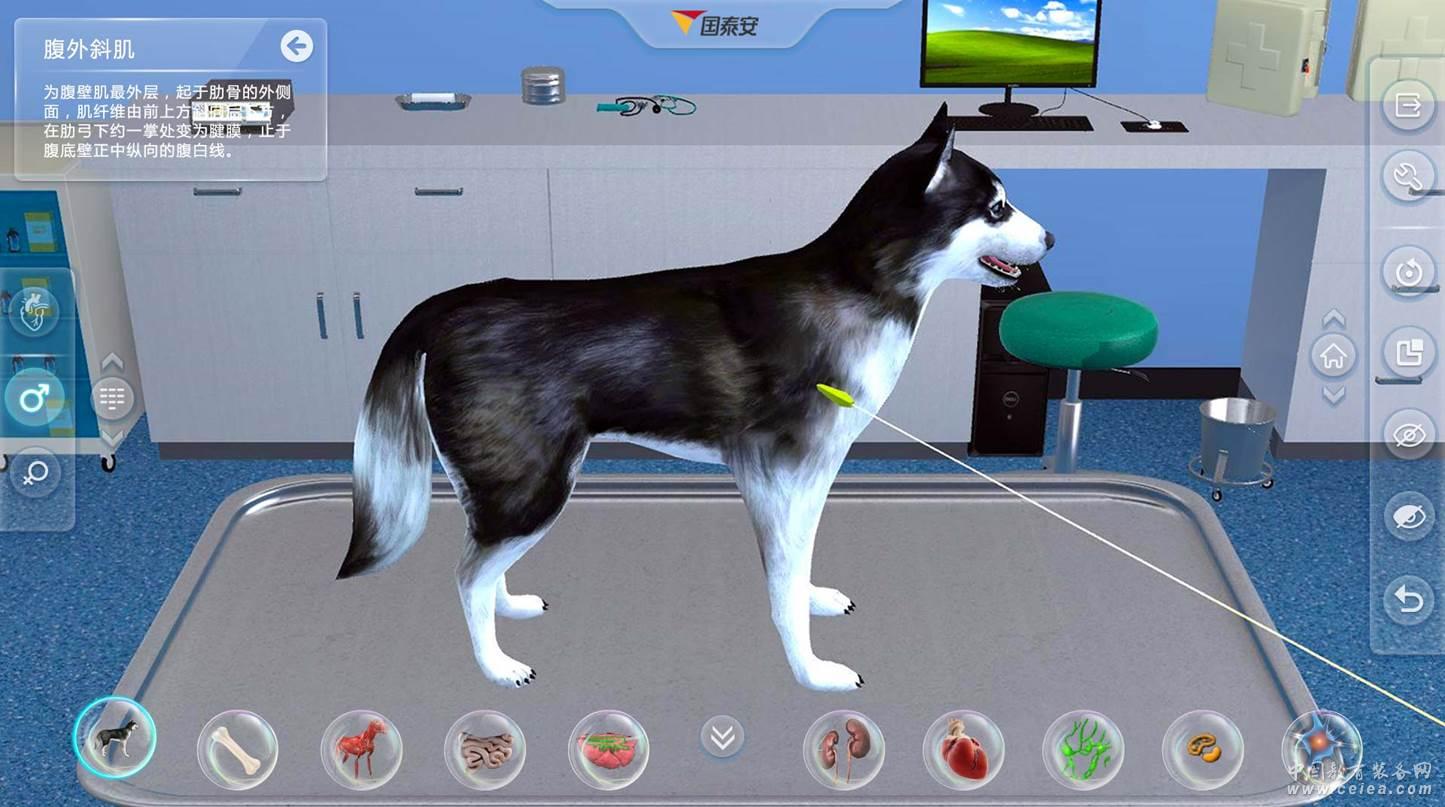 該系統以犬為模型,可將犬的10大生理系統分層解剖展示,360°立體縮放展示2000多個解剖結構。同時每個結構對應的解剖學專業名稱、注釋可輔助提升教學和實訓過程�?勺寣W生看到實體解剖實驗中難以觀測到的機體局部、微觀的動態過程,例如心臟的跳動、血液的循環等,讓學生能更好地統一整體和局部、動態和靜態下的認知和理解。