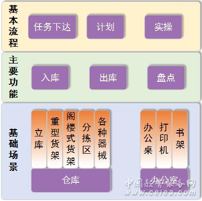 4、軟件以實際的倉儲配送中心為原型進行仿真,包括自動化立庫、閣樓式貨架、重型貨架、流利式電子標簽貨架、手動叉車、電動叉車、傳送帶、消防設(shè)施、托盤、辦公區(qū)等倉儲配送中心的主要設(shè)施設(shè)備;