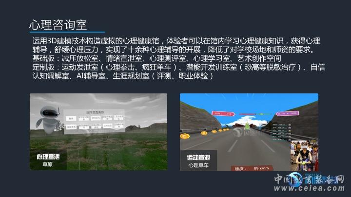 產品詳細介紹運用3D建模技術構造虛擬的心理健康館,體驗者可以在館內學習心理健康知識,獲得心理輔導,舒緩心理壓力,實現了十余種心理輔導的開展,降低了對學校場地和師資的要求