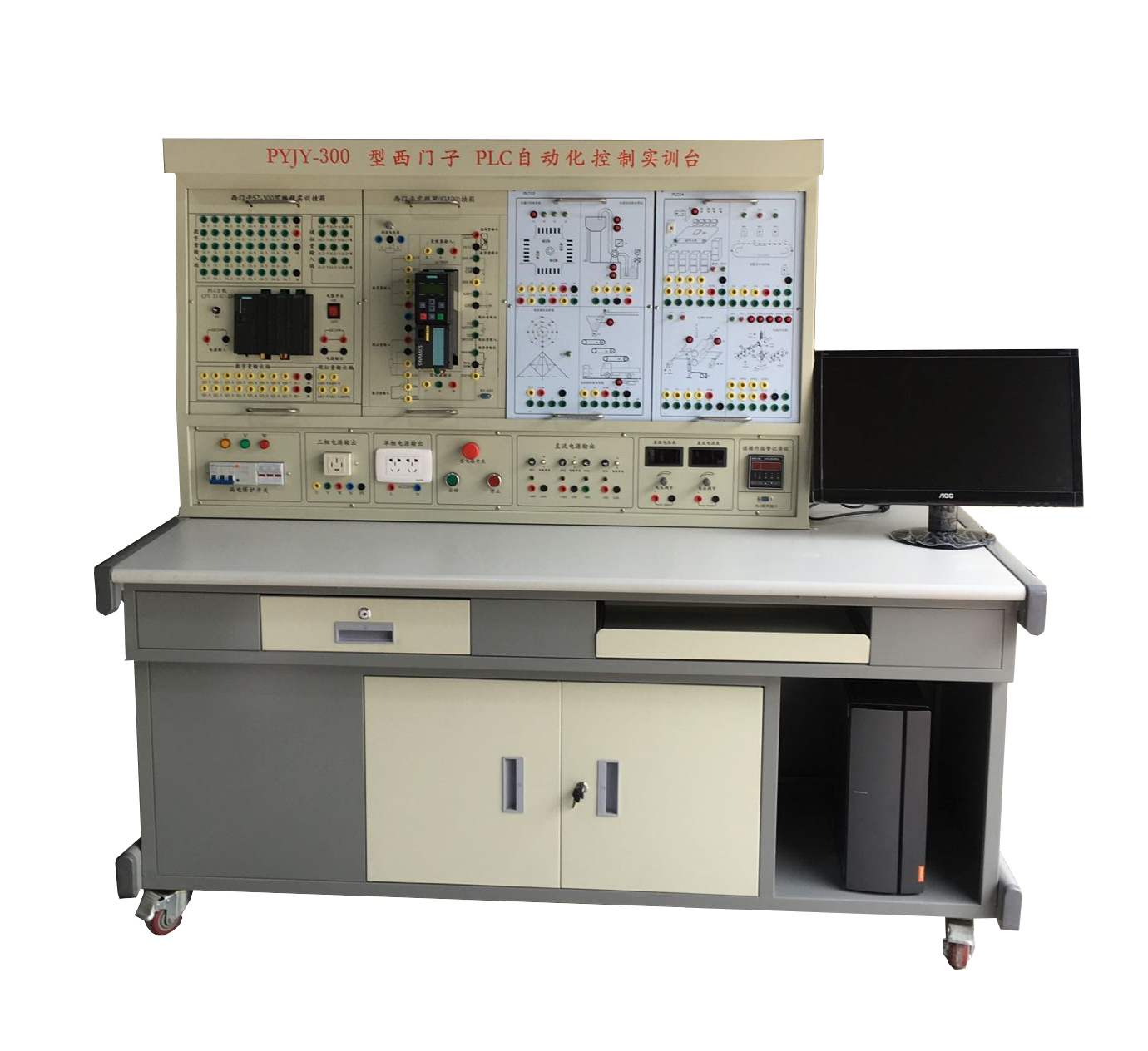 “PYJY-300型西門子PLC自動化控制實訓(xùn)臺”是根據(jù)國家勞動和社會保障部職業(yè)技能鑒定中心為維修電工技師、高級技師的職業(yè)培訓(xùn)與技能鑒定而研制的,它集PLC、變頻器、觸摸屏、模擬實訓(xùn)對象、仿真軟件、組態(tài)軟件于一體。適合PLC可編程控制、變頻調(diào)速控制實訓(xùn)教學(xué)及技師技能鑒定考核。