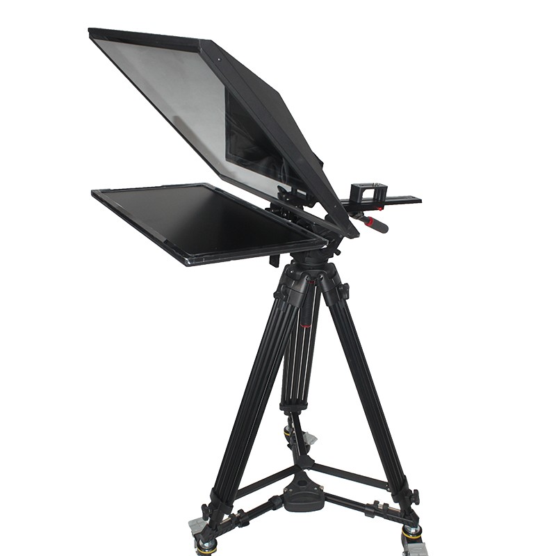 Indenpendent hand operated bracket to hold the teleprompter. The teleprompter is separated with the camera bracket, and it is much easier to move, adjust, disassemble, carry and operated.