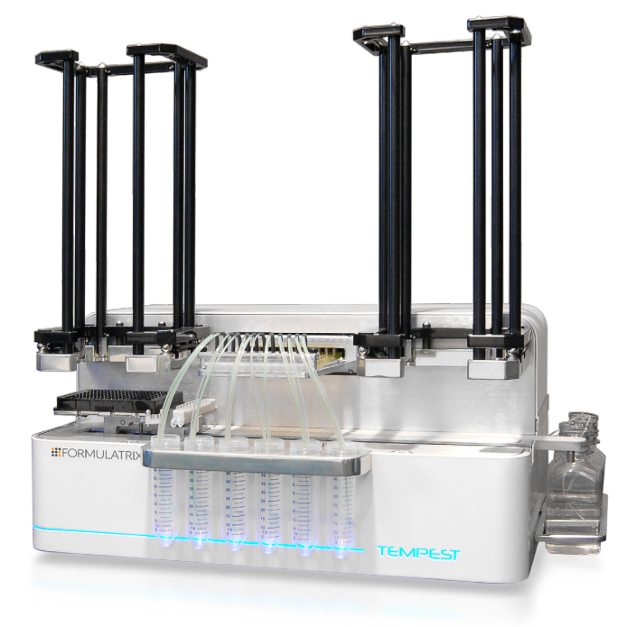 TEMPEST®是一臺擁有 96 個獨立控制噴嘴的高通量、非接觸式自動分液設備,最多可將 12 種試劑任意體積分配到任意孔中。