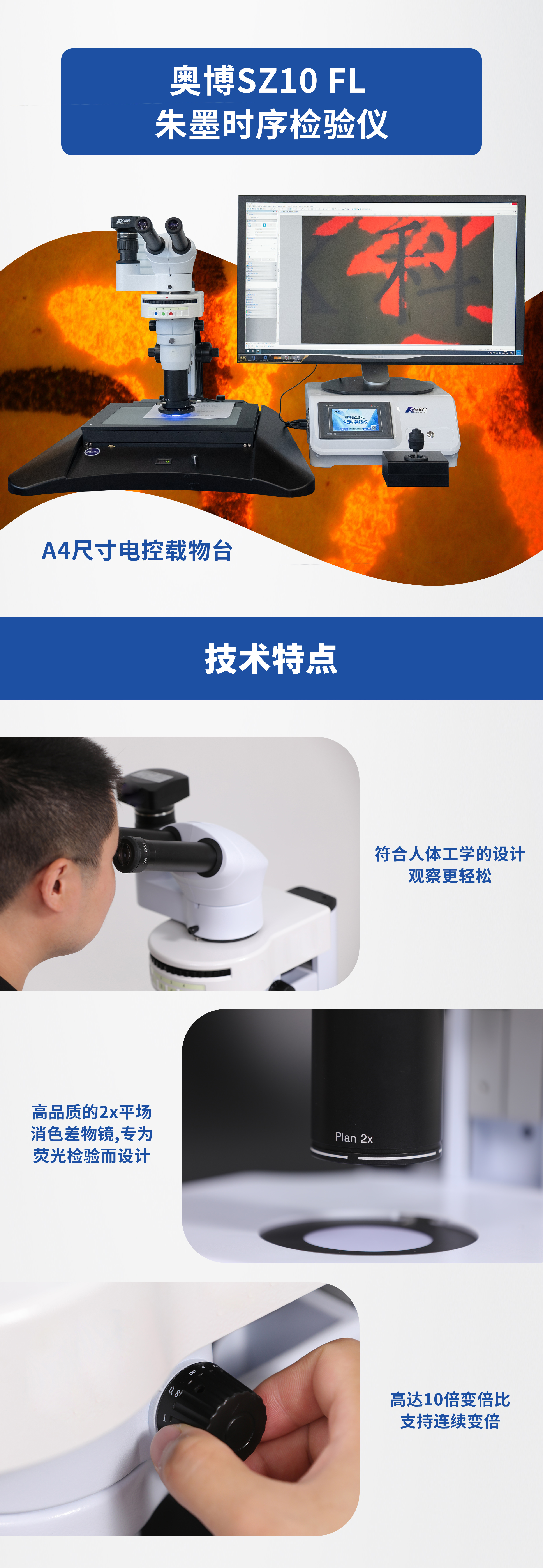 產品型號:奧博SZ10 FL 朱墨時序檢驗儀/體視熒光顯微鏡