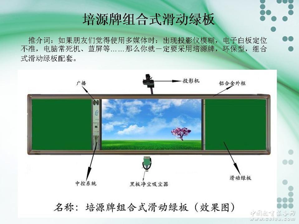 推廣意義:由于該核心設備(行業代號JS-HXZ),無與倫比地吸凈粉塵和凈化空氣的良好效果,可以和任何正規黑板(綠板)組合,升級為名符其實的無塵黑板(綠板),彌補以上產品的某些不足,有效預防教師職業病,而受到用戶廣泛贊譽;由于具有化毒、消煙、濾微塵、超靜音、多功能,性價比高的特點,而極具市場競爭力,目前已通過四川省教育廳、四川省教學儀器設備管理處嚴格檢測認可。專家估計:學校每班都采用該設備,在不改變粉筆書寫習慣的前提下,在保證原有教學效果好的前提下,將節約教育成本至少10%,師生平均壽命將延長5~8歲,每年將有人平800--1000元左右的教師職業病治療費無需開支…… 使用該設備,將成為提升學校形象和提高辦學競爭力的一個重要標志!