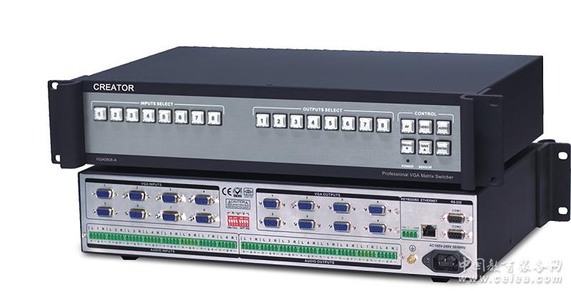 Pt-VGA0804-A是一款支持8路音視頻信號輸入,4路音視頻信號輸出的專業(yè)矩陣切換設(shè)備。用于將多個電腦信號和音視頻輸入信號同步或異步切換到多路輸出通道中的任一輸出通道。具有RS-232通訊接口和網(wǎng)絡(luò)接口,方便與電腦、遙控系統(tǒng)或各種遠(yuǎn)端控制設(shè)備連接應(yīng)用。