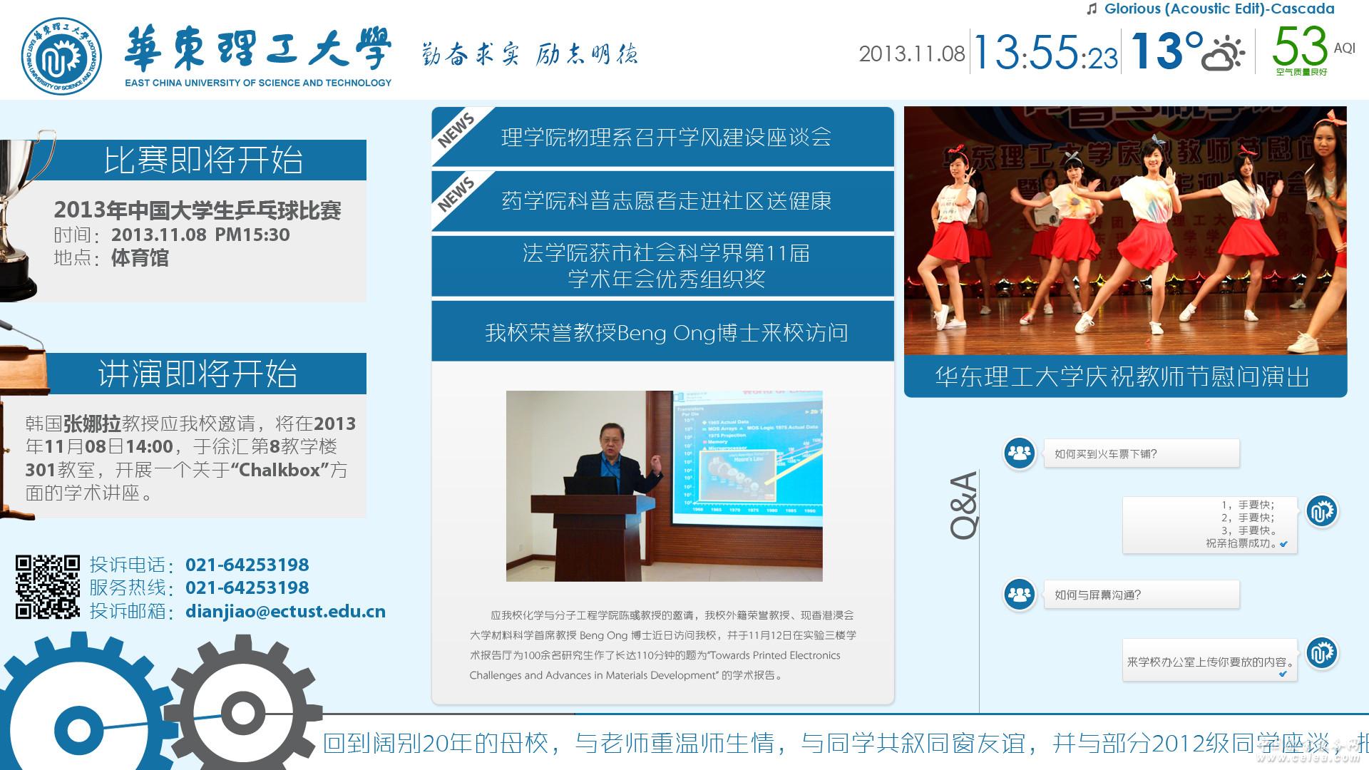 銳美奇數字標牌解決方案可以部署在學校的各種公共場所包括教學樓,圖書館,體育館等 教學區進行課程信息、教室信息、講座信息、培訓信息等基礎教學信息進行動態發布,讓教師以及學生快速獲取所需信息。并可以將公共講座、名人演講等進行全范圍的直播,幫助更多的教職員工能夠參與其中。 住宿區、運動場館、餐飲娛樂區等進行新聞、重大事件、體育賽事、娛樂信息、公眾信息等內容的直播,為校園內獲取社會信息提供一條有效的途徑。 |