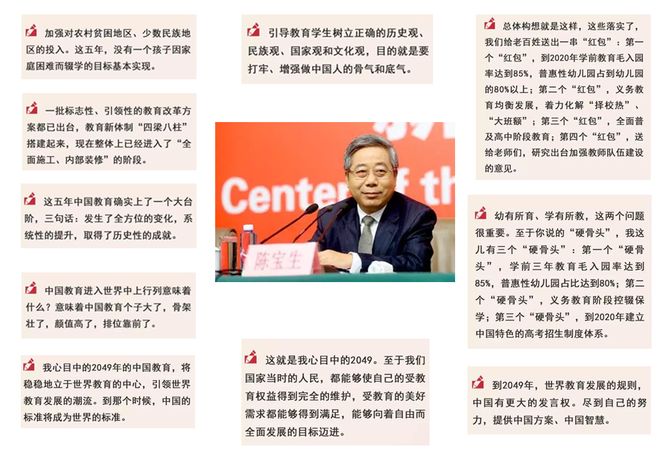 當前,我國已進入全面建成小康社會的決勝階段,我國教育改革發展也已進入一個新的階段,教育的內外環境、供求關系、資源條件、評價標準都發生了重要而深刻的變化。面對新形勢新任務新要求,教育改革要因事而化、因時而進、因勢而新,堅持解放思想、實事求是、與時俱進,堅持轉變作風、真抓實干、務求實效,努力破除制約教育科學發展的體制機制障礙,努力解決人民群眾關心的教育熱點難點問題,為發展具有中國特色、世界水平的現代教育提供制度支撐。