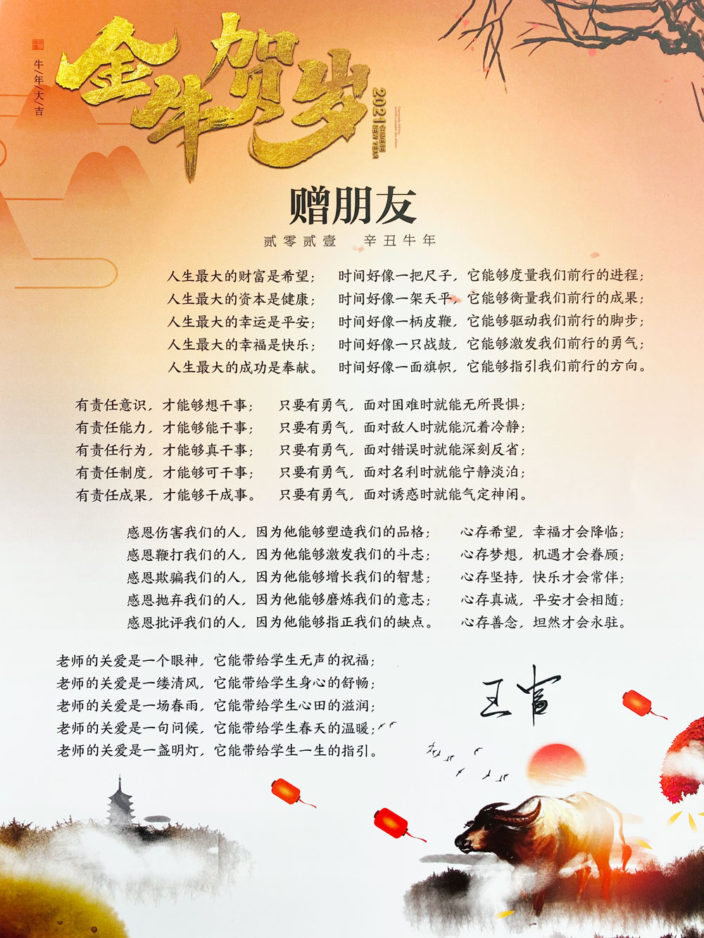 律回春漸,新元肇始。在這辭舊迎新的美好時(shí)刻,我謹(jǐn)代表中國(guó)教育裝備行業(yè)協(xié)會(huì),向長(zhǎng)期關(guān)心、支持教育裝備工作的各級(jí)領(lǐng)導(dǎo)、各界友人,向敬業(yè)愛(ài)崗、努力奮斗的教育裝備戰(zhàn)線(xiàn)全體同仁,向協(xié)會(huì)全體會(huì)員,表示衷心的感謝和誠(chéng)摯的祝福,祝大家在新的一年里身體健康、工作順利、闔家幸福、萬(wàn)事如意!