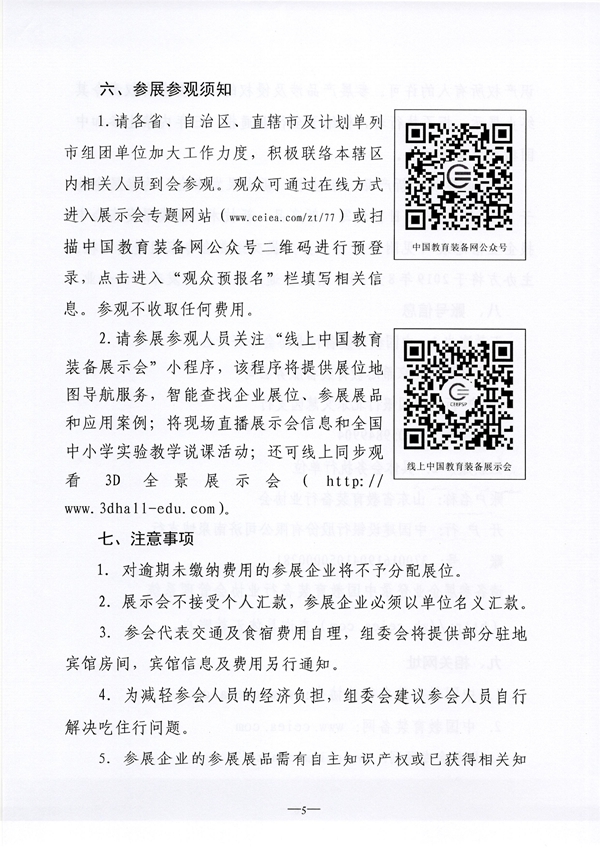 1.請各省、自治區、直轄市及計劃單列市組團單位加大工作力度,積極聯絡本轄區內相關人員到會參觀。觀眾可通過在線方式進入展示會專題網站(www.0fd76bnv.cn/zt/77)或掃描中國教育裝備網公眾號二維碼進行預登錄,點擊進入“觀眾預報名”欄填寫相關信息。參觀不收取任何費用。