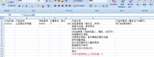 7. 系統設計有批量導入功能,如上傳產品較多,可選“下載模板”,下載.xlsx格式文件后,按要求填寫完成進入“產品導入”步驟導入文件。(注:嚴格參照下載模板格式內容填寫所有信息,不允許有空項,關鍵詞之間用#分割)