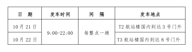 1.循環交通車停靠位置:T3航站樓1F,國內到達08號口門外機場巴士發車點