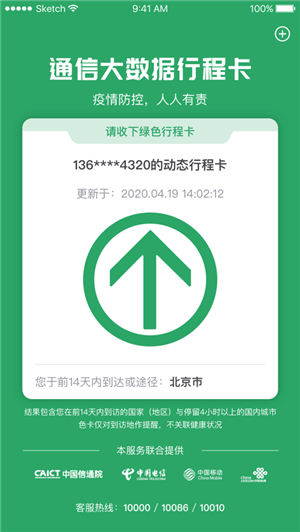 (2)打開“通信行程卡”app,輸入手機號,獲取“通信大數(shù)據(jù)行程卡”狀態(tài)。