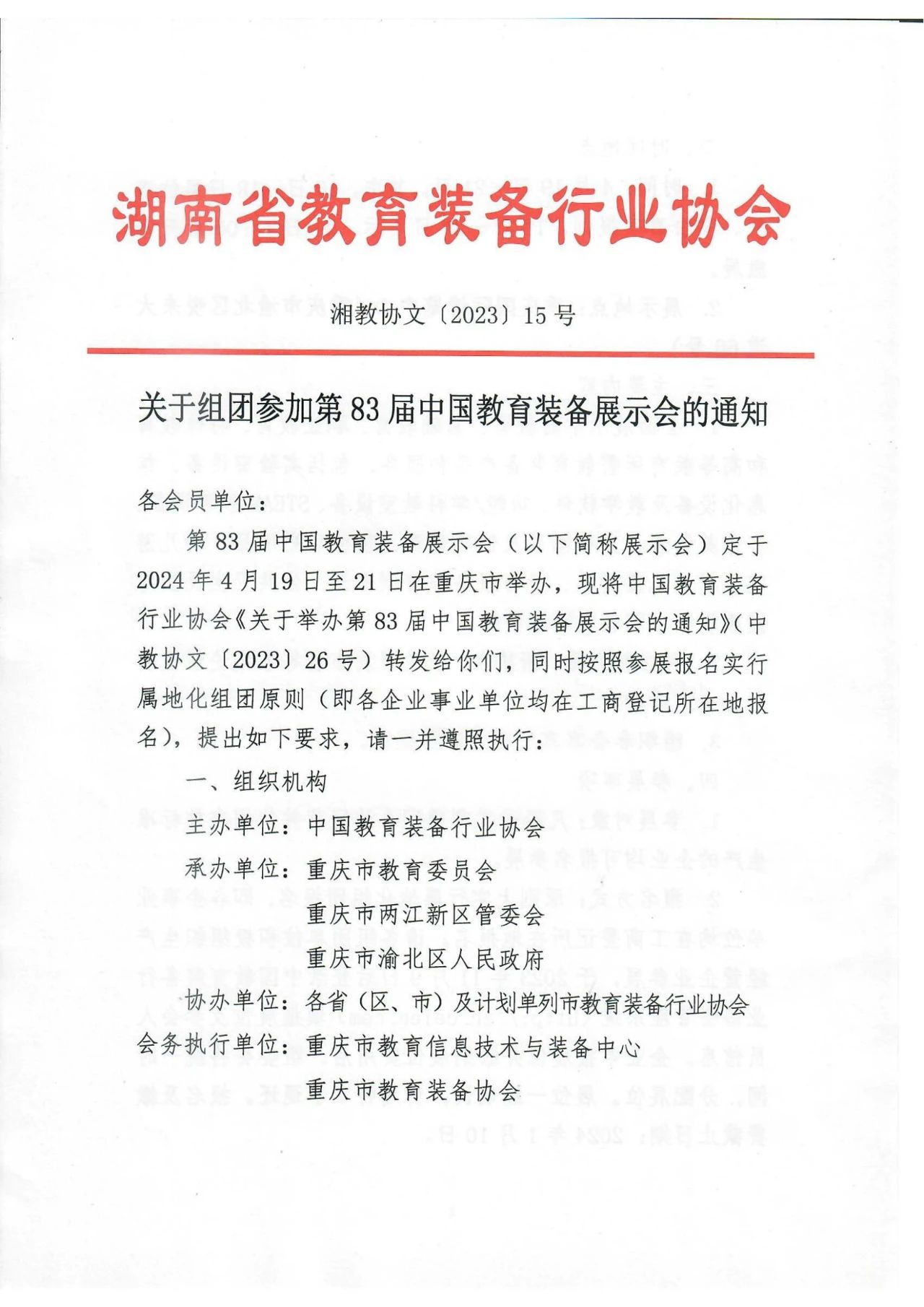 主辦單位:中國教育裝備行業(yè)協(xié)會展會時間:2024年4月19日-21日展會地點:中國重慶國際博覽中心(重慶市渝北區(qū)悅來大道66號)