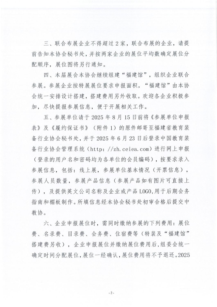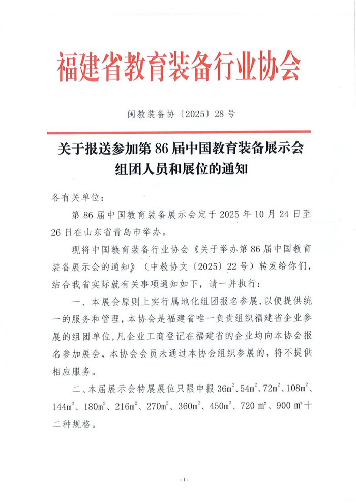 福建省教育裝備行業協會關于報送參加第86屆中國教育裝備展示會組團人員和展位的通知