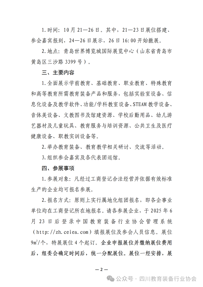 主辦單位:中國教育裝備行業協會展會時間:2025年10月24日-26日展會地點:青島世博城國際展覽中心