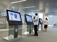 通常在銀行金融領域的等候區,都會有觸控一體機展示金融工作的底子信息和廣告等,除此之外,觸控式的一體機還推出如按碼等取效勞,觸控式一體機的用途得以拓展。