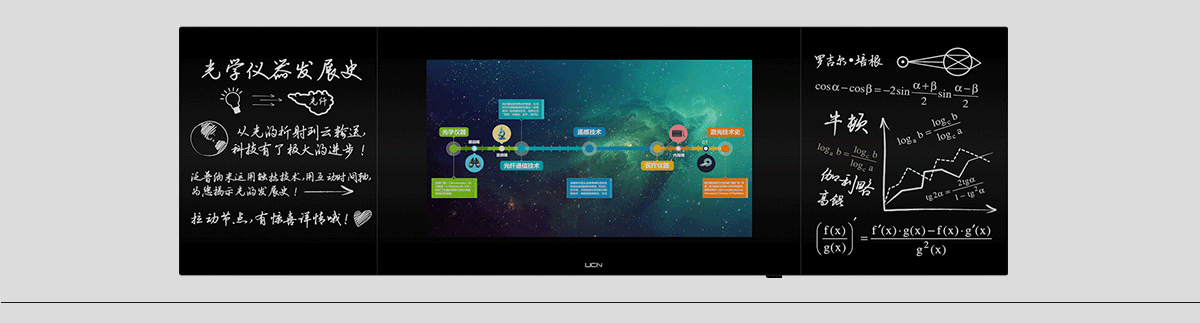 UCN 納米觸控黑板是一款革命性智能互動教學設備。它集納米觸控、液晶顯示、電腦主機于一體,搭載i-tech專業教學軟件。