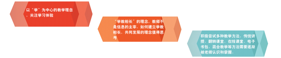 | 積極看待互聯網+教育,個人思維+互聯網思維。新時代,信息獲取渠道多樣,網絡、各種移動終端、各種社交軟件、各類在線教育、公開課等,促使教師個體必須與互聯網思維融為一體,擁有開放、多元、蜘蛛網式的思維方式。 |